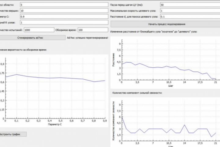 Научно-исследовательское приложение для моделирования движения узлов ad-hoc сети. С применением модели мобильности "Преследование". Написано на QT, язык C++.