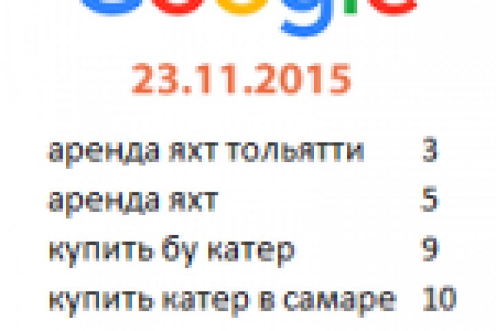 Оптимизация и продвижение сайта по яхтам и катерам. Позиции остались после окончания сотрудничества.