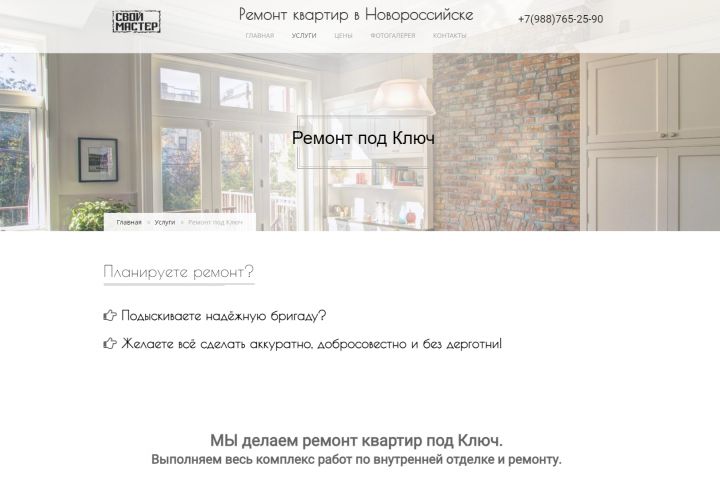 Промо страница создана для проведения рекламных кампаний по продвижению ремонтных работ