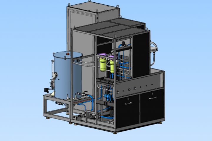 Подбор и размещение оборудования, выбор соединений установки, расчеты трубопроводов, расчеты мощности нагревателя, расчет емкости бака. Проработка установки в программе КОПАС 3d, выполнение конструкторской документации.