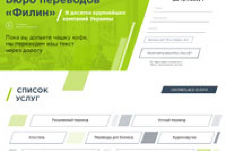 Верстка сайта бюро переводов "Филин", г. Харьков.