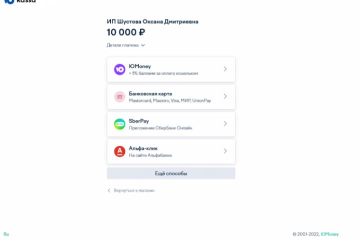 Подключение ЮКасса