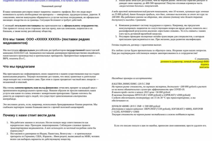 Прикреплены два файла - краткое сообщение для первого касания в соцсетях и развернутое полноценное письмо с коммерческим предложением.