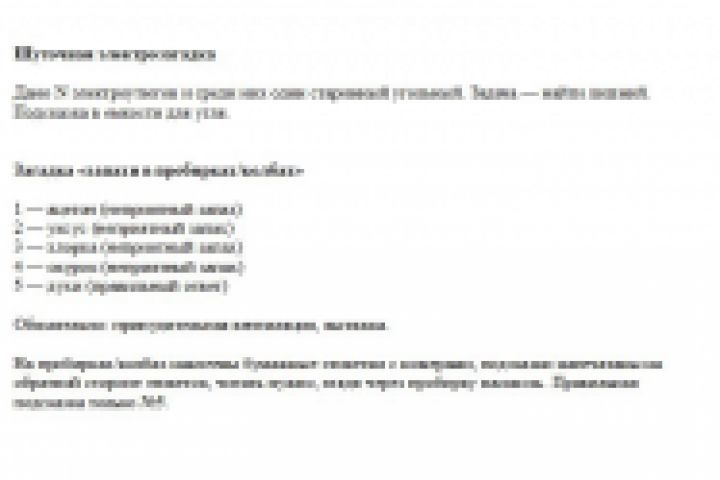 Примеры заданий. Здесь обе загадки логические, но во второй есть и элемент "ловкости рук" - нужно разбирать мелкий шрифт через кривое стекло.