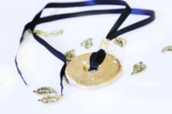 Кулон из пластики, покрытый тонким слоем золотой потали. Стильный, а значит сияющий, как Солнце.