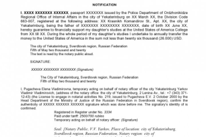Перевод спонсорского письма на английский язык для выезда ребенка за границу.