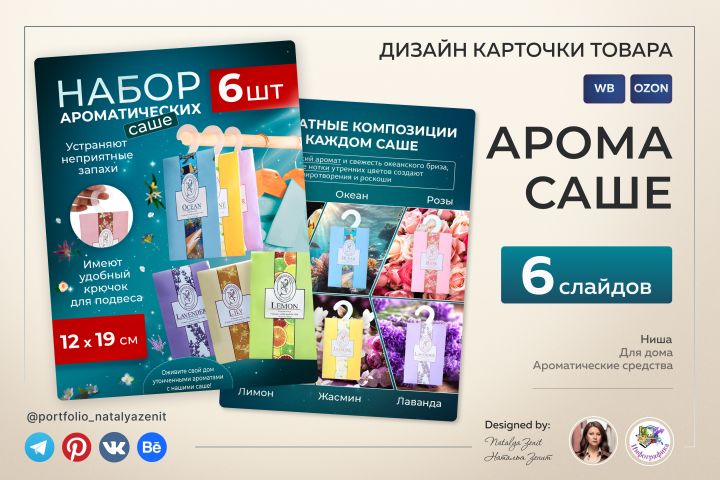 Дизайн и инфографика карточки товара для Вайлдберриз "Набор ароматических саше" Категория: #дизайн #инфографика #дом #ароматическиесредства Для связи ✍ в телеграм: @Natalya_Svetlogorsk