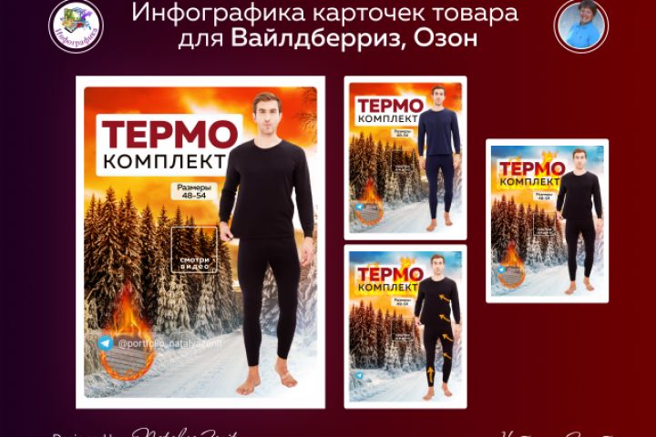 Подборка главного слайда для рекламы карточки "Термобелье". Категория #одежда Для заказа инфографики и дизайна пишите Заказчик забрала все дизайны для теста рекламы и перехода на карточку