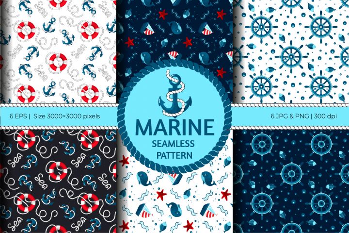 Бесшовные паттерны на морскую тематику в стиле cartoon.