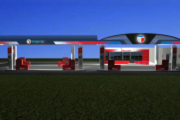 Оформление фасада АЗС "Трайпл". Боковой фасад (ночной вид)