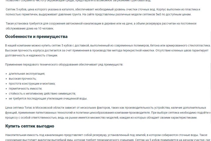 СЕО-описание для категории/раздела на сайте под поисковую оптимизацию, с употреблением ключей. Уникальность 100% по текст.ру, по Главред более 7,5 баллов, по Тургеневу не более 5 баллов.