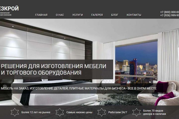 Описание сайта: Сайт компании "Резкрой" предлагает комплексные решения для производства мебели и торгового оборудования. Основной фокус сделан на изготовление мебели на заказ, продажу плитных материалов для бизнеса и изготовление фасадов.