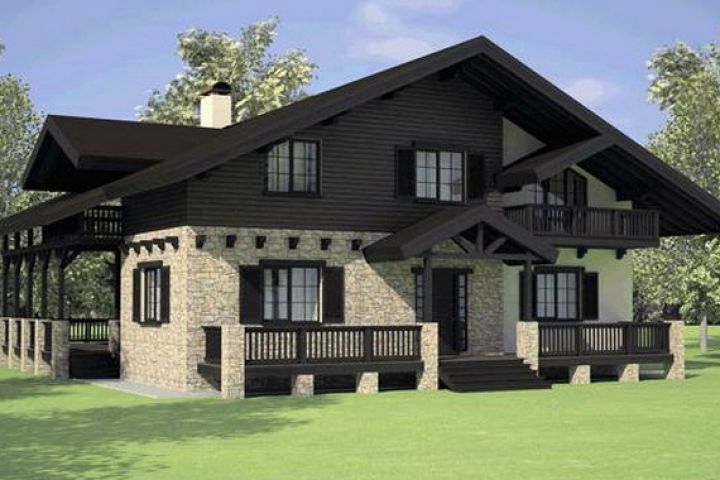 Оригинальный полноценный проект дома "Альпийское шале", с гаражом, удобное расположение комнат, рассчитаны все материалы вид и количество.