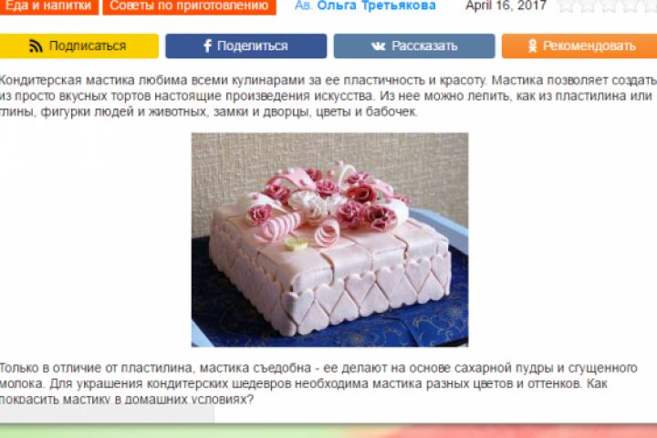 Кондитерская мастика - прекрасный материал для украшения и создания уникальных тортов.