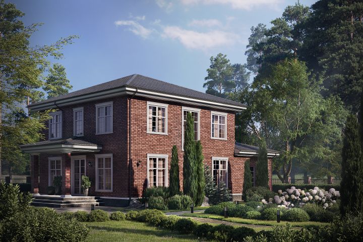 3D визуализация коттеджа из красного кирпича