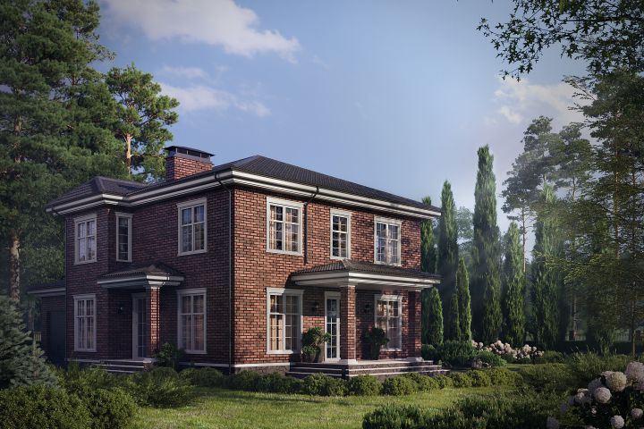 3D визуализация коттеджа из красного кирпича