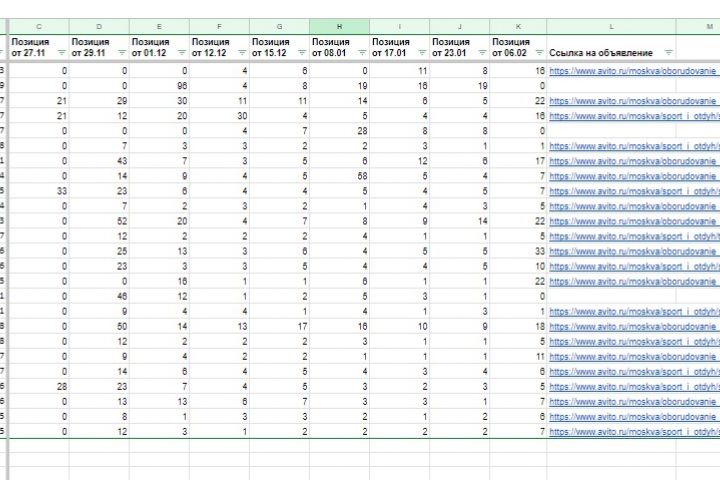 В данной работе я занимался анализом конкурентов, бренда и позиций для продвижения бренда на первые строчки авито
