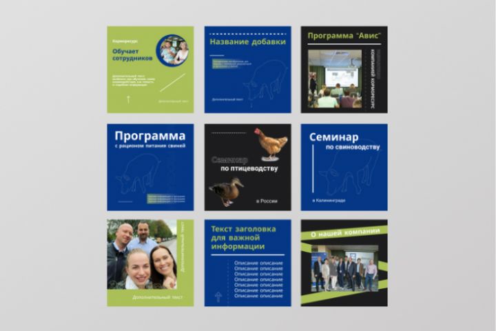 Задача: создание дизайна ленты для компании, занимающейся продажей кормовых добавок, проведением семинаров по данной теме.