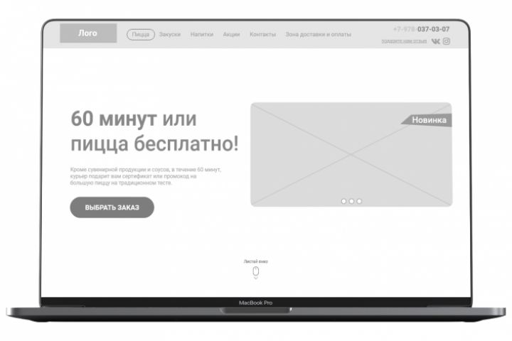 Прототип для сайта пиццерии в городе Севастополь. Работа выполнена в программе: Adobe XD
