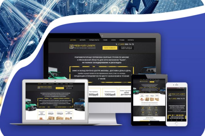 Адаптивный лендинг логистической компании, специализирующеся на рефрежераторной перевозке паллет с грузом в Ашан
