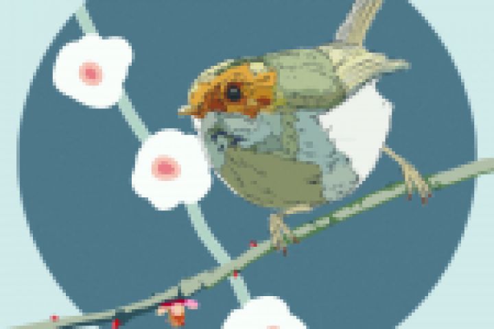 птичка на цветущей веточке