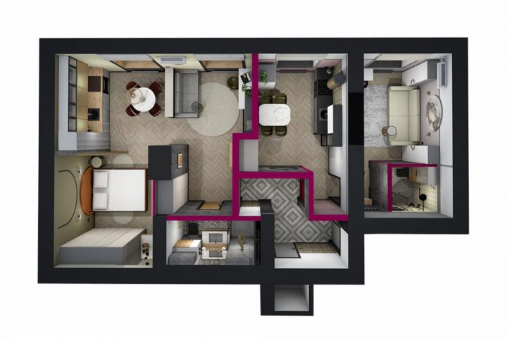 3д перепланировка квартиры в старом фонде в две квартиры -студии