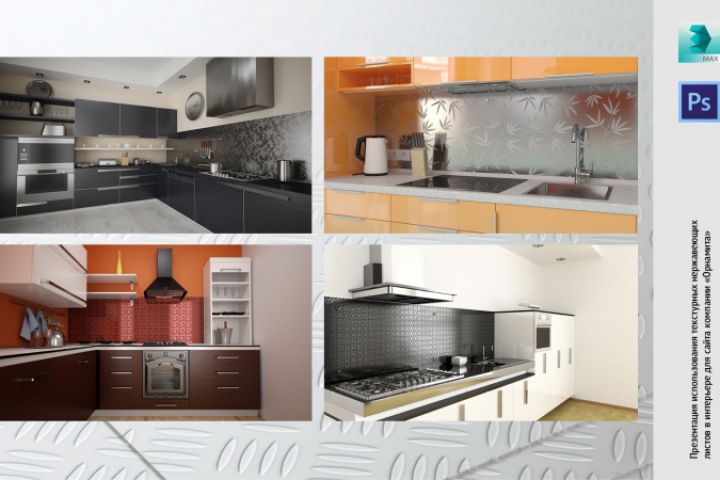 Визуализация для производителя фактурной стали, показ изделий в интерьерах