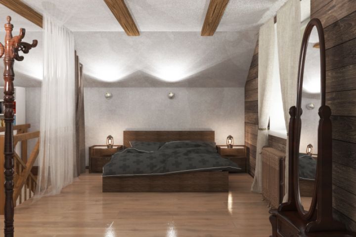 2 этаж бани, зона с кроватью, Лофт