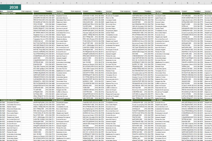Разработана итоговая форма и скрипт VBA для формирования календаря на месяц для обзвона клиентской базы по имеющимся номерам и перечню менеджеров. Ускорение ручной работы заказчика в десятки раз.