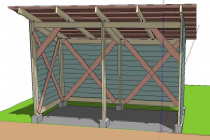 Сооружение для хранения дров на дачном участке. Брус, доска, ондуллин