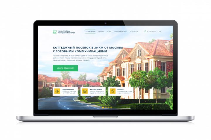 Landing Page для компании, занимающейся продажей участков, готовых домов, а так же строительством домов на территории коттеджного поселка "Лесной пейзаж". Сочный, доступный, понятный, насыщенный информацией дизайн позволит потенциальному покупателю сделать выбор в пользу компании.