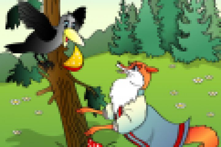 Иллюстрация к басне Крылова "Лисица и ворона"
