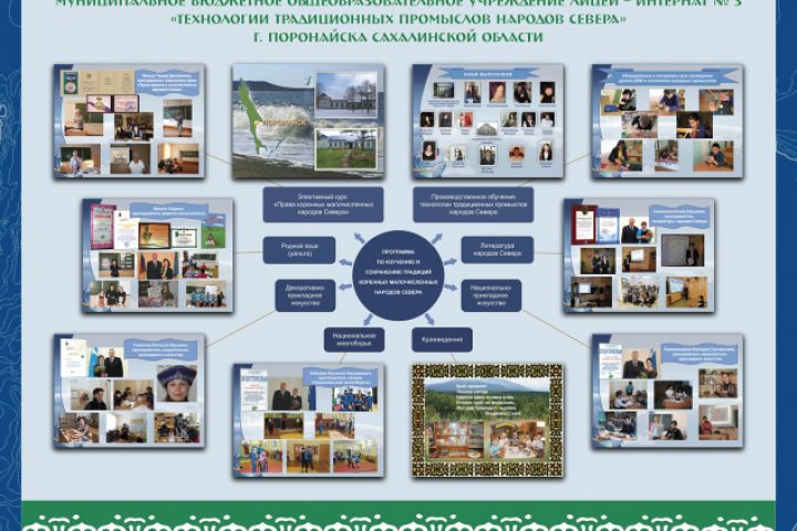 Баннер для презентации деятельности лицея-интерната в рамках проведения международной выставки-ярмарки "Сокровища Севера 2014" в г. Москва. Диплом II степени «Лучший регион» присужден Сахалинской области во Всероссийском конкурсе этнокультурных образовательных систем регионов Севера, Сибири и Дальнего Востока Российской Федерации «Родной язык и культура в системе общего образования».