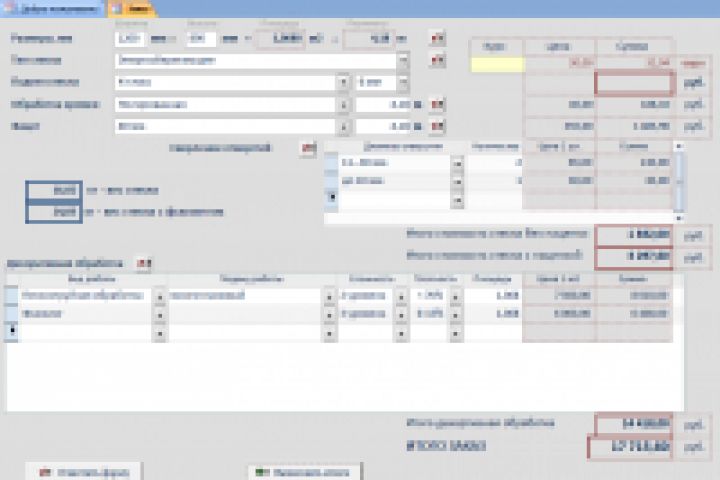 Программа-калькулятор заказов для производственной фирмы. Задача - как можно быстрее дать потенциальному заказчику ответ о стоимости заказа, вводя или меняя параметры заказа и моментально получая ответ.