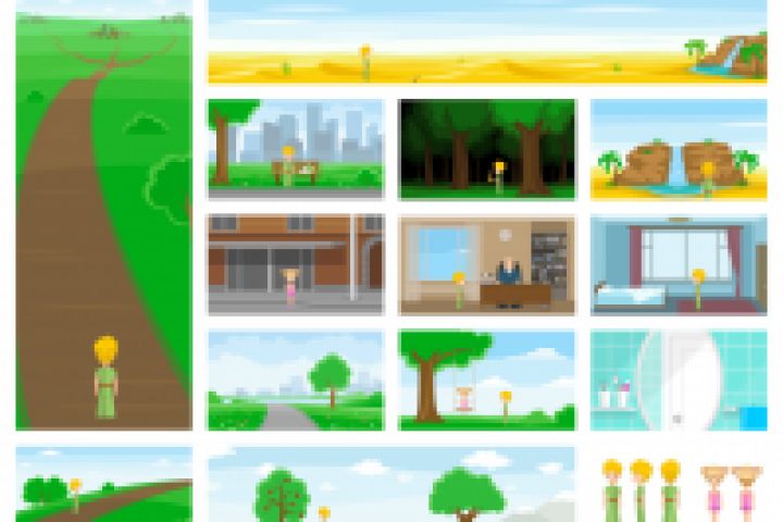 Графика для аним. роликов на "Форум позитивной экономики". Персонажи, антуражи, простейшая плашечная стилистика - по ТЗ. cdr, ai.