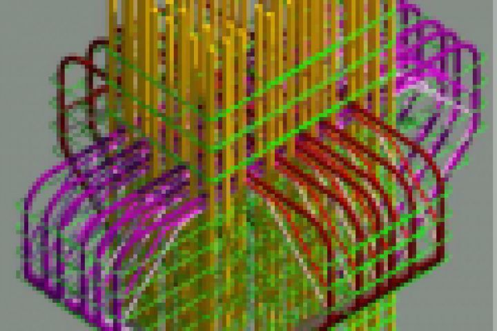 Было разработано армирование монолитной колонны крупного объекта с 4 короткими консолями. На изображении представлена визуализация армирования