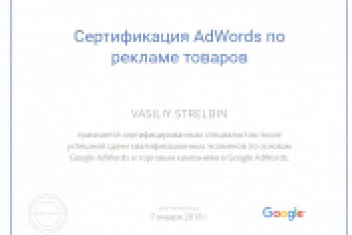 Сертификат AdWords по рекламе товаров