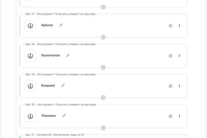 - Занесение контактной информации и ответов клиентов в карточку лида в Битрикс.