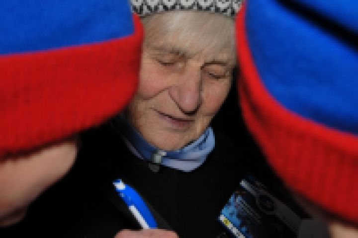 Юные спортсмены берут автограф у известной чемпионки по горным лыжам. Октябрь, 2016.