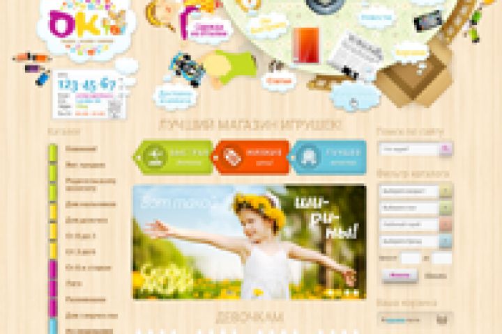Основная идея данного веб-дизайна — создание атмосферы детской комнаты, где повсюду разбросаны игрушки и прочие детские вещи. В то время как на столе лежат «взрослые» вещи, помогающие родителям ориентироваться на сайте. Однако основное действо всё-таки проходит под столом, куда всегда забирается детвора, а значит там же в нашем магазине и располагается витрина с товарами.