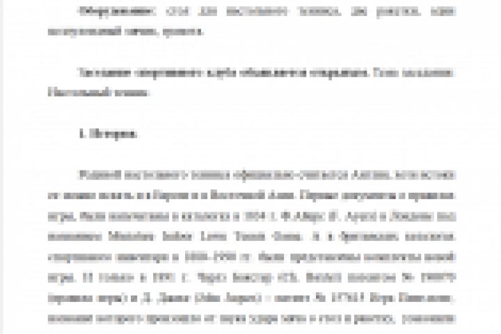 Сценарий к проведению заседания спортивного клуба на тему: "Настольный теннис".