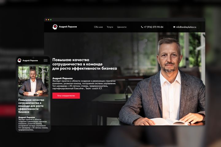 Разработать сайт бизнес-тренера с возможностью оставить заявку и подписаться на рассылку.