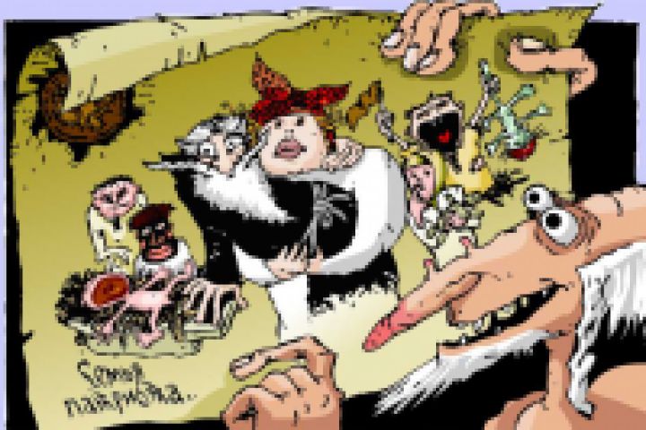 Эскиз заставки для телепередачи с анимационными лицами ведущих.
