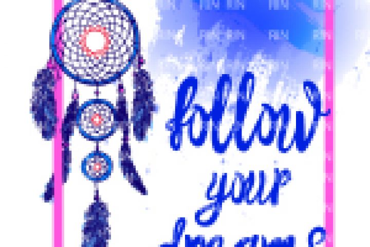 Следуй своей мечте, нарисованный ловец снов и леттеринг
