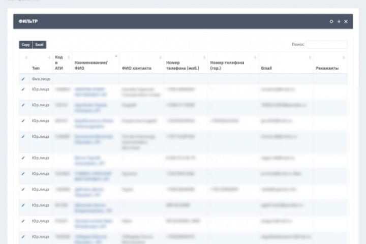 1) База перевозчиков; база клиентов (компаний/контактов); база водителей (каждого можно привязать к одной или нескольким компаний-перевозчикам)