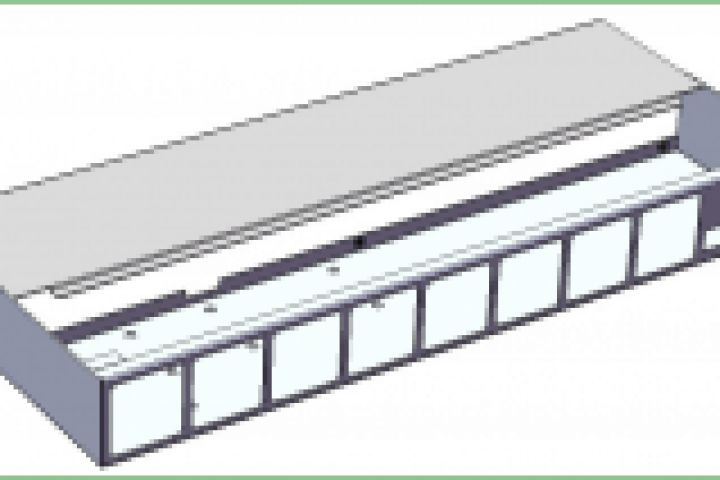 Модель корпуса 430 х 105 х 50 с двумя гнуто-вырезными частями под технологию предприятия.