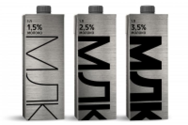 Фоновая текстура имитирует металлическое ведро, в которое доят коров.