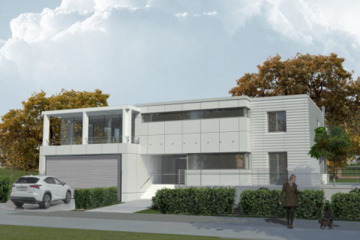 Дом частично облицован фиброцементными панелями, прозрачным волнистыми акриловыми листами.