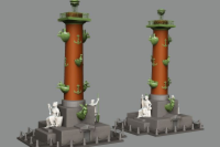 Высокополигональная 3D модель ростральных колонн, Санкт-Петербург, элемент стрелки Васильевского острова.