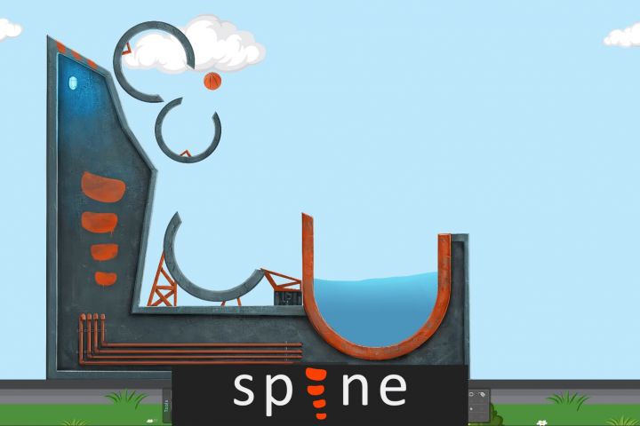 Классическая анимация с мячиками. Баскетбольный и бильярдный шары преодолевают полосу препятствий под действия силы тяжести и самой трассы.